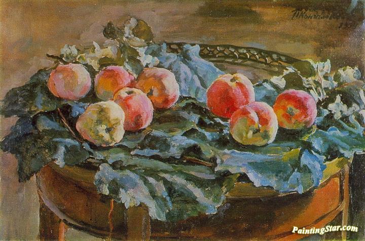 Still Life. Apples at the round table, Art Painting by Pyotr Konchalovsky