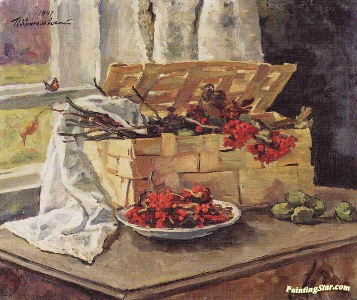 Still Life. Basket with Rowan, Art Painting by Pyotr Konchalovsky