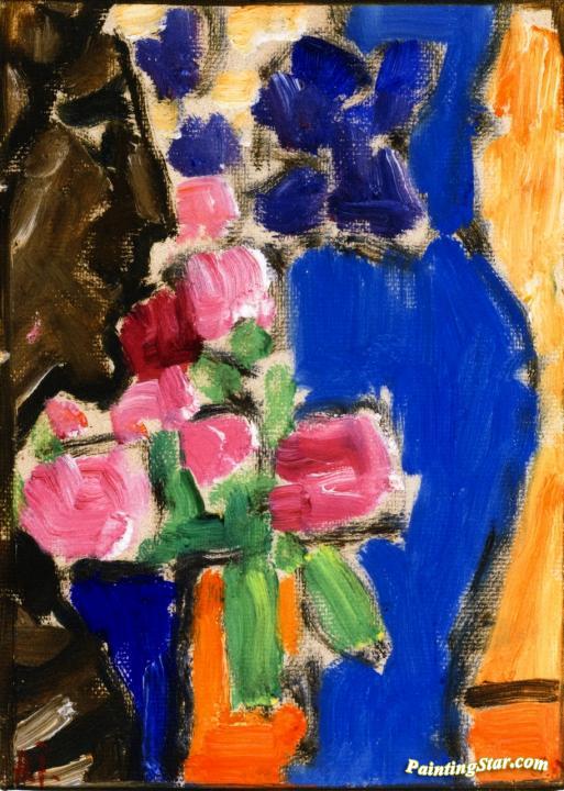 Still LIfe: Flower Still LIfe with Vase and Figure, Semi-Profile, Art Painting by Alexej Jawlensky