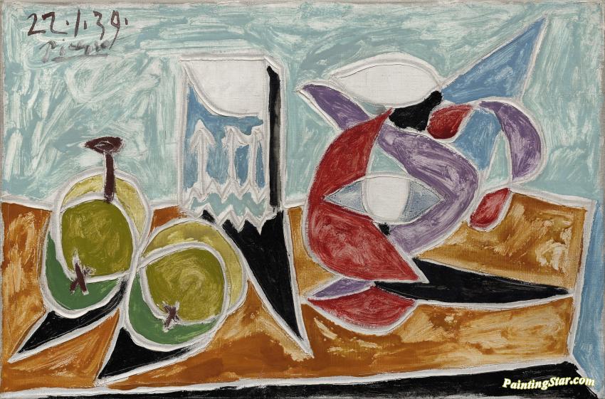 Still Life - Fruits And Pitcher (nature Morte - Fruits Et Pot), Art Painting by Pablo Picasso