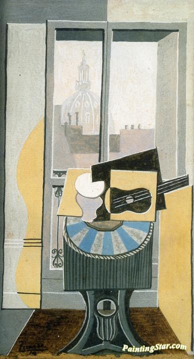 Still Life In Front Of A Window Overlooking The Eglise St. Augustin, Art Painting by Pablo Picasso