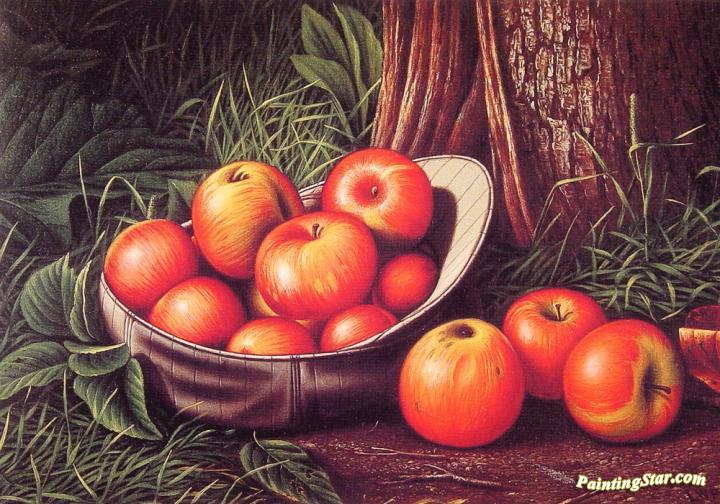 Still Life of Apples in a New York Giants Cap, Art Painting by Levi Wells Prentice