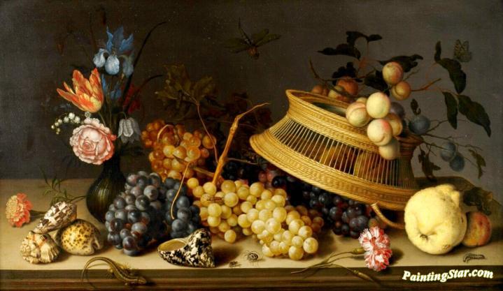 Still Life Of Flowers, Fruit, Shells, And Insects, Art Painting by Balthasar van der Ast