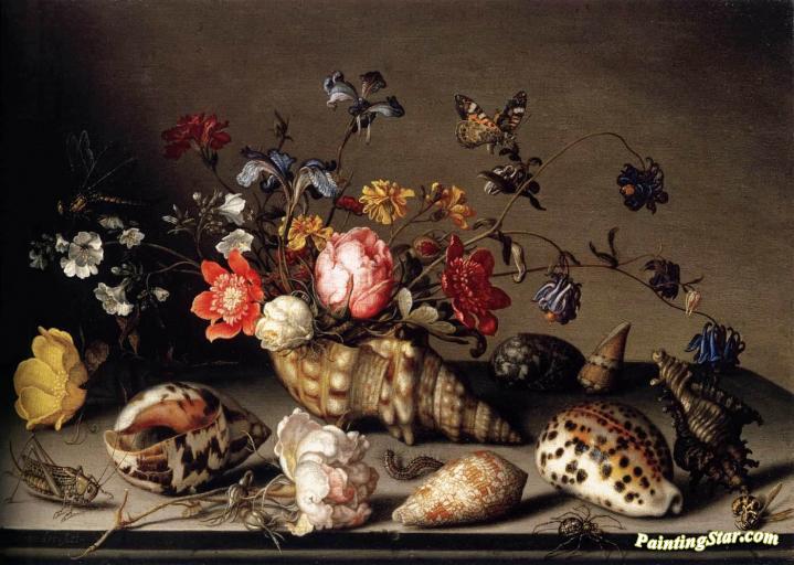 Still-Life of Flowers, Shells, and Insects, Art Painting by Balthasar van der Ast