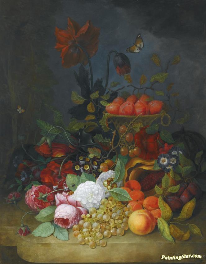 Still Life Of Roses And Other Flowers, Art Painting by Jan Frans van Dael