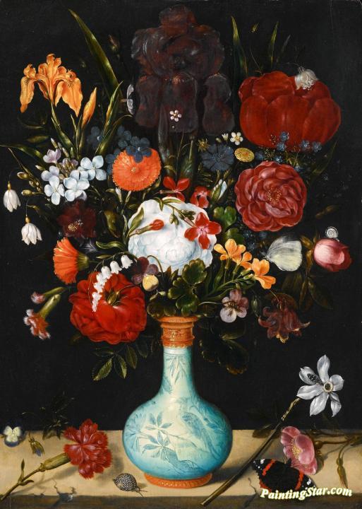 Still Life Of Roses, Marigolds, Aquilegia, Violets, Etc. In A Wan-li Kraak Porcelain Vase, Art Painting by Ambrosius Bosschaert