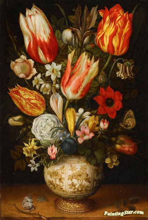 Still Life of Tulips, Roses, Narissi, Daffodils, Crocuses, an Iris, etc., Art Painting by Christoffel van den Berghe