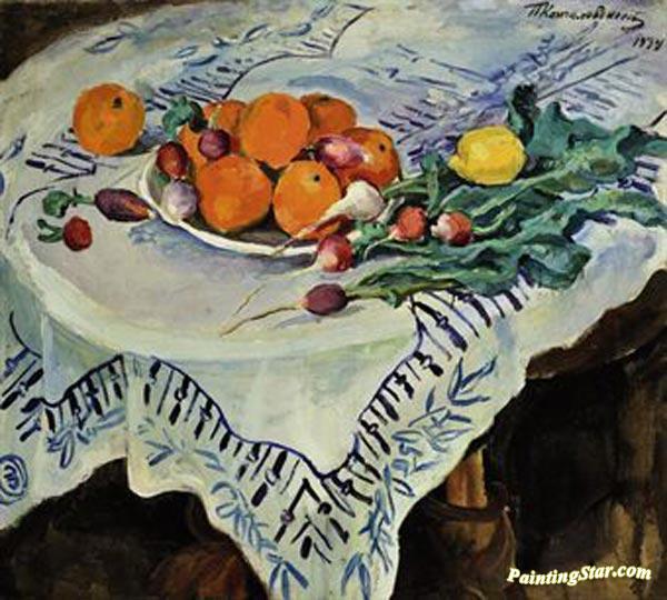 Still Life. Oranges and radishes. Kislovodsk, Art Painting by Pyotr Konchalovsky