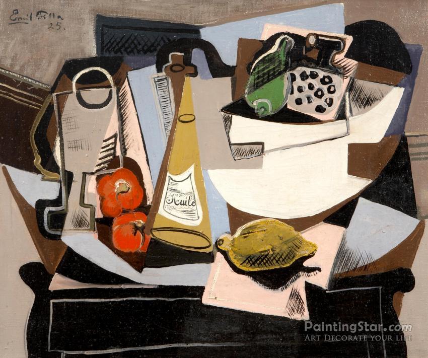 Still Life With A Lemon, Bottle Of Olive Oil, Bell Peppers And A Bowl Of Vegetables, 1925, Art Painting by Emil Filla