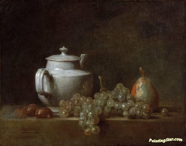 Still Life With A Teapot, Grapes, Chestnuts And A Pear, Art Painting by Jean-Baptiste-Simeon Chardin