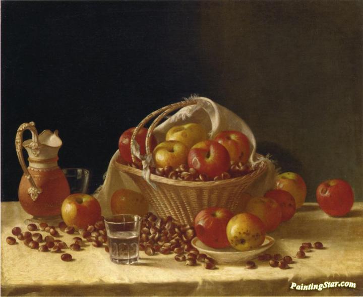 Still Life with Apples, a Basket and Chestnuts, Art Painting by John F. Francis