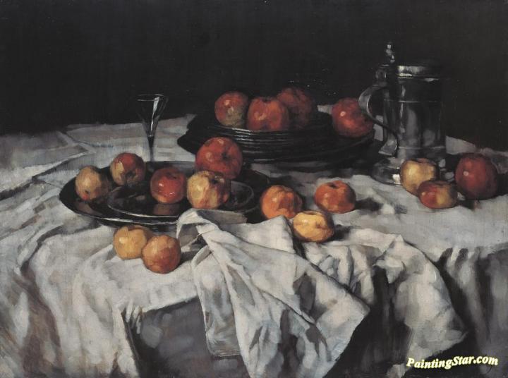 Still Life With Apples, A Pewter Jug And A Wine Glass, Art Painting by Carl Eduard Schuch