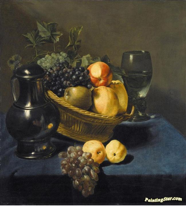Still Life with Apples and Grapes in a Wicker Basket, Art Painting by Judith Leyster