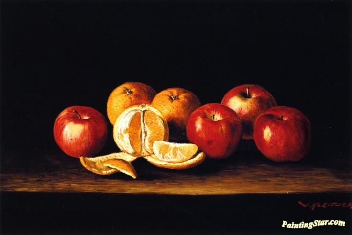 Still Life With Apples And Oranges, Art Painting by Joseph Kleitsch