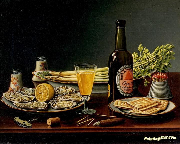 Still Life With Bass Ale And Oysters, Art Painting by Levi Wells Prentice