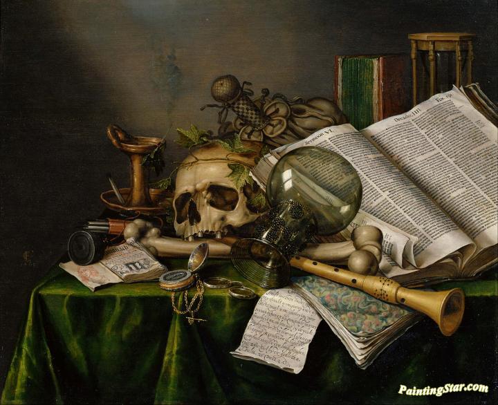 Still Life with Books and Manuscripts and a Skull, Art Painting by Edwart Collier