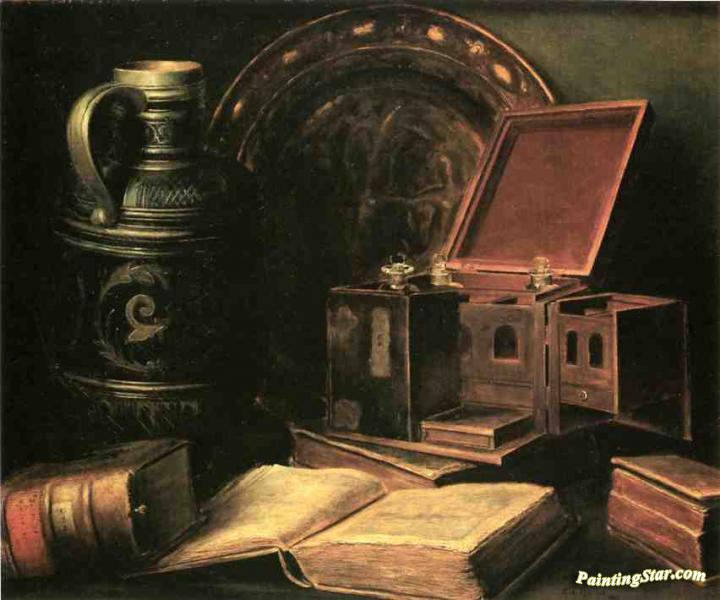 Still Life with Books, Jug and Tantalus, Art Painting by Charles Meurer