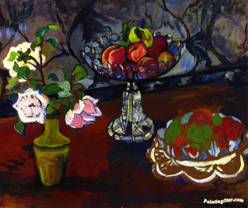 Still Life With Bouquet Of Roses And Bowls Of Fruit, Art Painting by Suzanne Valadon