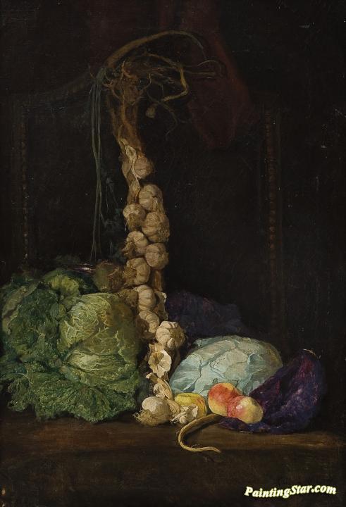 Still life with cabbage, garlic and apples, Art Painting by Kitty Kielland