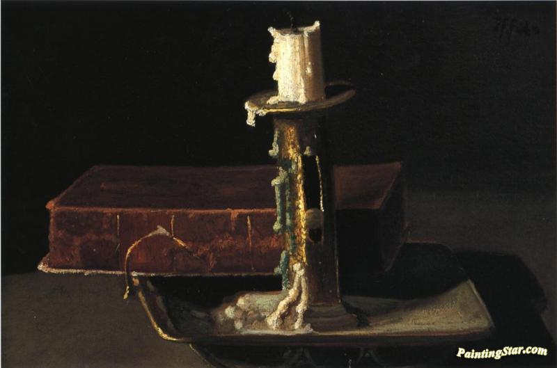 Still Life With Candlestick And Book, Art Painting by John Frederick Peto