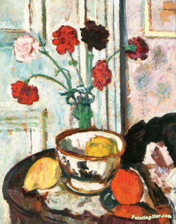 Still LIfe with Carnations and Fruit, Art Painting by George Leslie Hunter