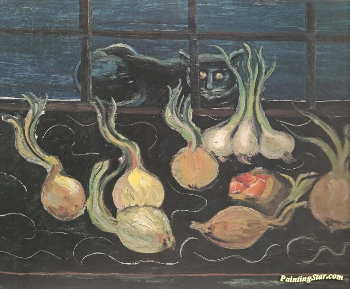 Still-life With Cat And Onions, Art Painting by Boris Grigoriev