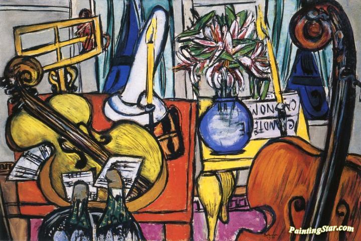 Still Life With Cello And Double Bass, Art Painting by Max Beckmann