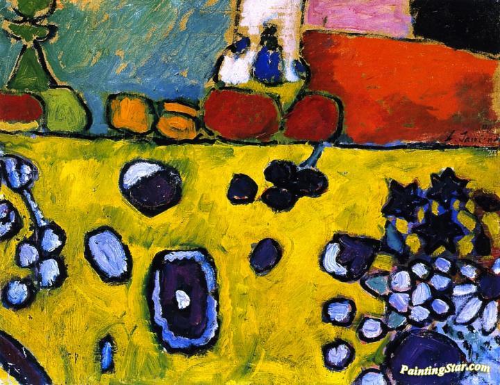 Still LIfe with Colored Tablecloth, Art Painting by Alexej Jawlensky