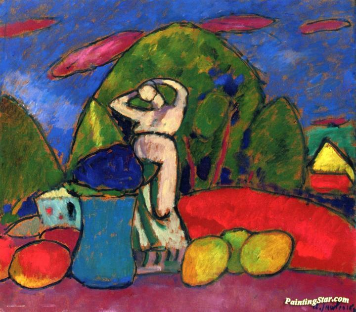 Still LIfe with Figure, Fruit and Landscape, Art Painting by Alexej Jawlensky