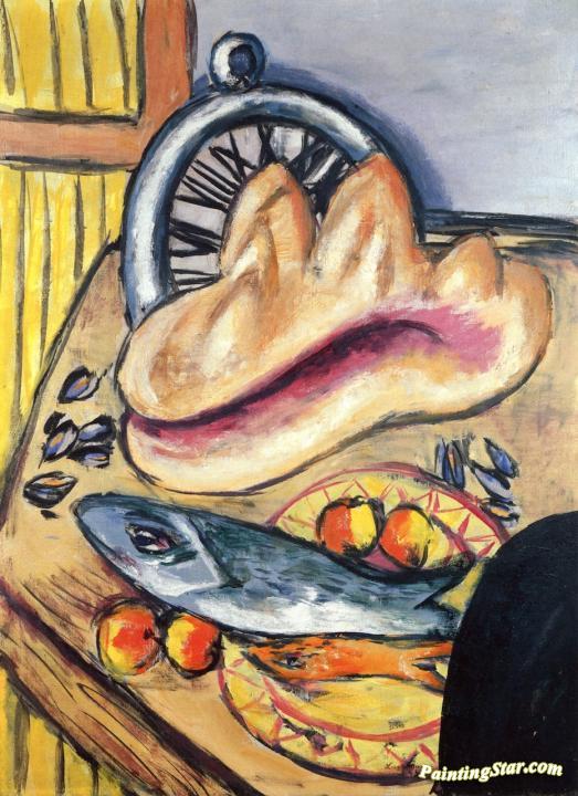 Still LIfe with Fish and Mussel, Art Painting by Max Beckmann
