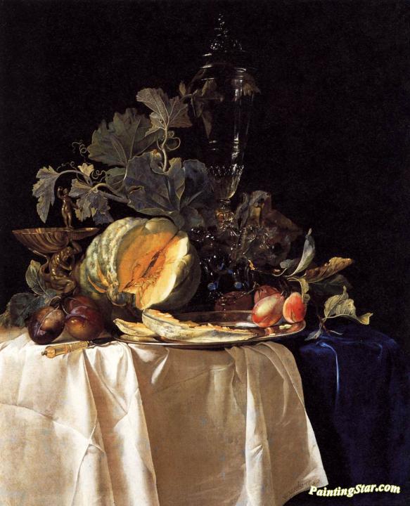 Still-Life with Fruit and Crystal Vase, Art Painting by Willem van Aelst