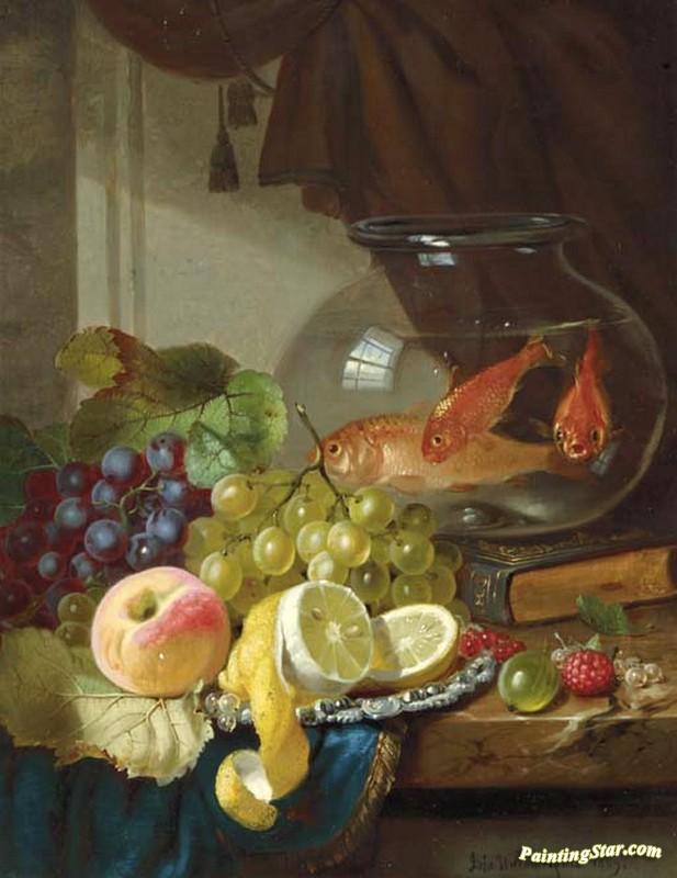 Still Life With Fruit And Goldfish In A Bowl On A Ledge, Art Painting by John Wainwright