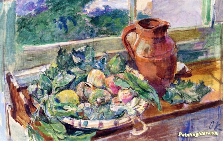 Still Life With Fruit And Jug, Art Painting by Oskar Kokoschka