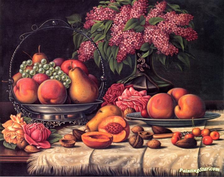 Still Life With Fruit, Nuts And Lilacs, Art Painting by Levi Wells Prentice