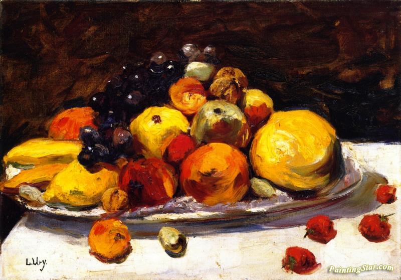 Still Life With Fruit On A White Table, Art Painting by Lesser Ury