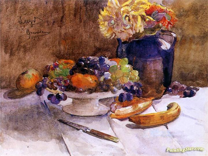 Still life with grapes and knife, Art Painting by Leon Jan Wyczolkowski