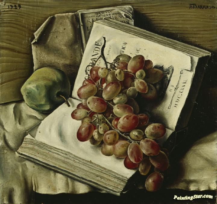 Still Life With Grapes, Apple And Two Books, Art Painting by Francois Emile Barraud