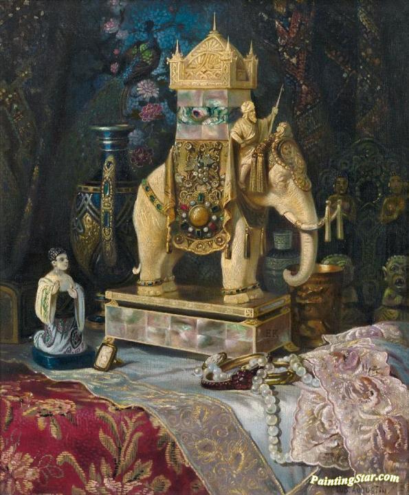Still Life with Ivory Elephant, Art Painting by Ludwig Augustin