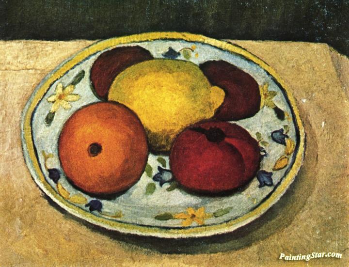 Still Life With Leaf Plant, Lemon And Orange, Art Painting by Paula Modersohn-Becker