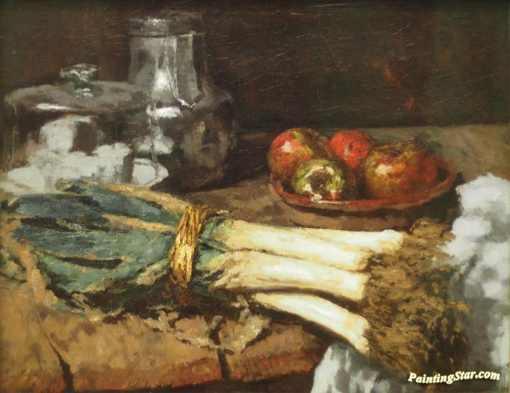 Still Life with Leek, Art Painting by Carl Eduard Schuch