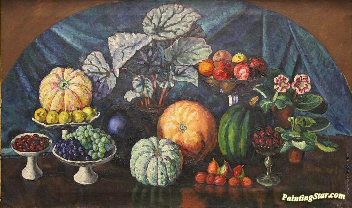 Still life with melons and pumpkins, Art Painting by Ilya Mashkov