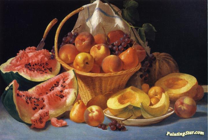Still Life with Melons, Peaches and Grapes, Art Painting by John F. Francis