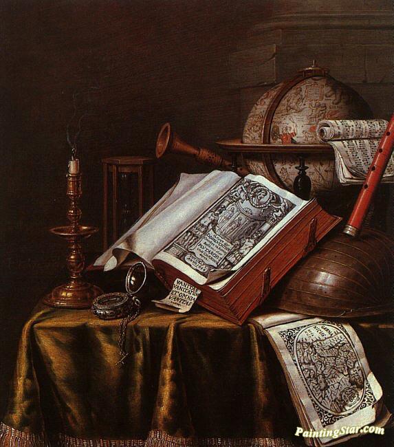 Still Life with Musical Instruments, Plutrach's "Lives", and a Celestial Globe, Art Painting by Edwart Collier
