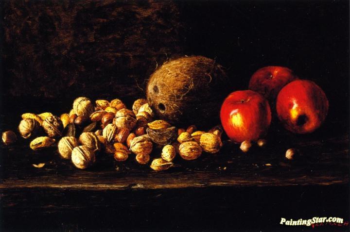 Still Life With Nuts, Coconut And Apples, Art Painting by Joseph Kleitsch