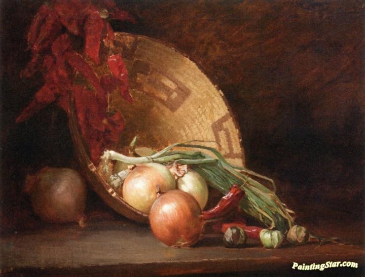 Still LIfe with Onions, Peppers and Basket, Art Painting by Guy Orlando Rose