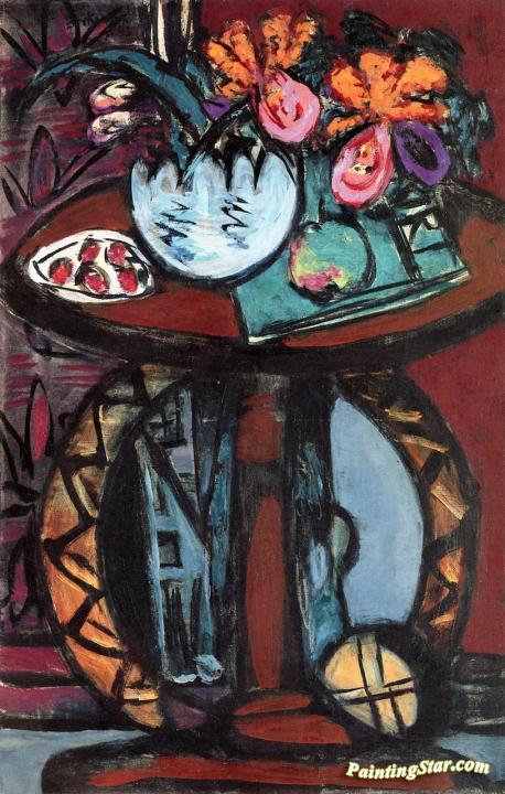 Still Life with Orange-Pink Orchids, Art Painting by Max Beckmann