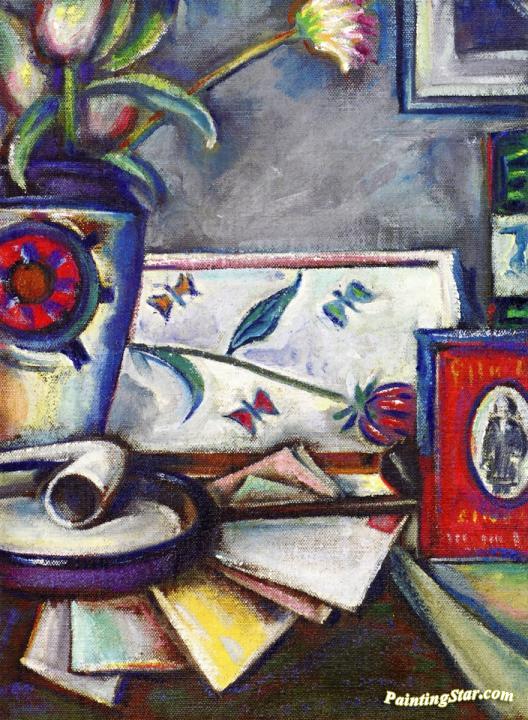 Still LIfe with Pipe and Letters, Art Painting by Preston Dickinson