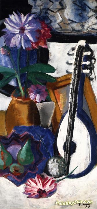 Still LIfe with Purple Dahlias, Art Painting by Max Beckmann
