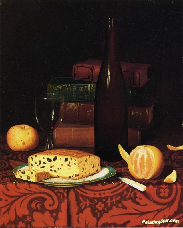 Still Life With Raisin Cake, Fruit And Wine, Art Painting by William Michael Harnett