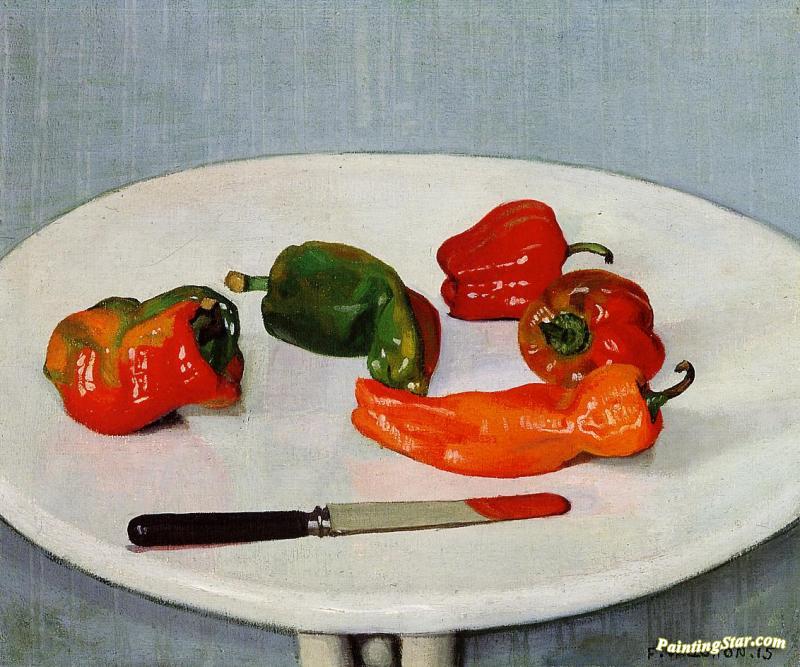Still Life With Red Peppers On A White Lacquered Table, Art Painting by Felix Vallotton